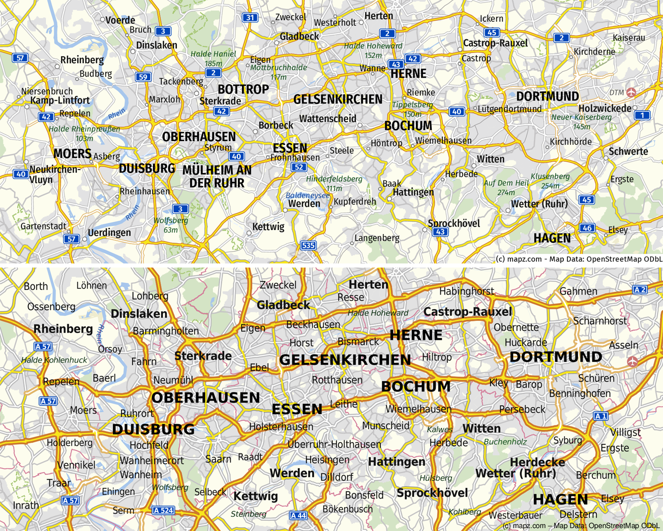 Our databases and the careful selection of content shown at different zoom levels are at the heart of mapz. They must be perfected before the design process can begin, and we are very proud that we have completely redeveloped the databases that form the technical foundation of mapz.com.
